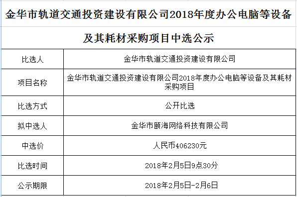 金華市金義東軌道交通有限公司運營2026-2027年度活動實施服務(wù)機構(gòu)框架協(xié)議項目中標候選人公示
