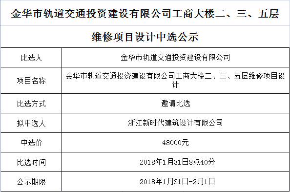 金華市金義東軌道交通有限公司運(yùn)營(yíng)2026-2027年度活動(dòng)實(shí)施服務(wù)機(jī)構(gòu)框架協(xié)議項(xiàng)目中標(biāo)候選人公示