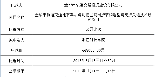 金華市金義東軌道交通有限公司運營2026-2027年度活動實施服務(wù)機構(gòu)框架協(xié)議項目中標(biāo)候選人公示