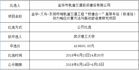 金華市金義東軌道交通有限公司運營2026-2027年度活動實施服務機構框架協(xié)議項目中標候選人公示