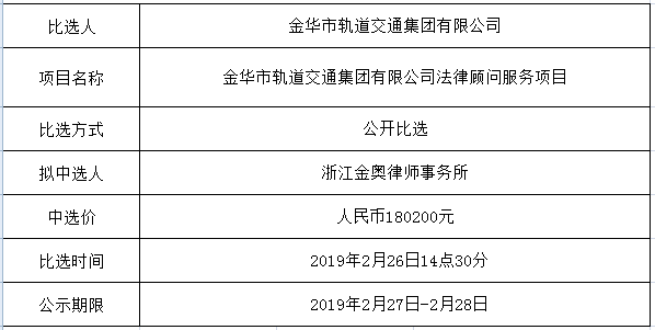 (金華市軌道交通集團有限公司法律顧問服務(wù)項目)中選公示