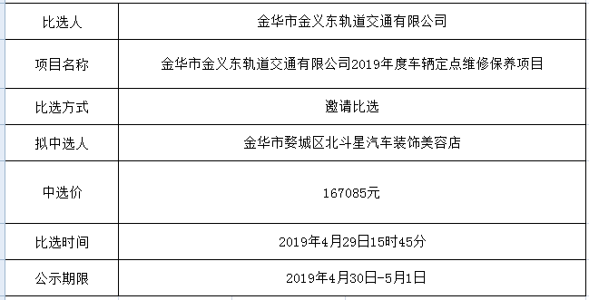 金華市金義東軌道交通有限公司運營2026-2027年度活動實施服務(wù)機構(gòu)框架協(xié)議項目中標(biāo)候選人公示