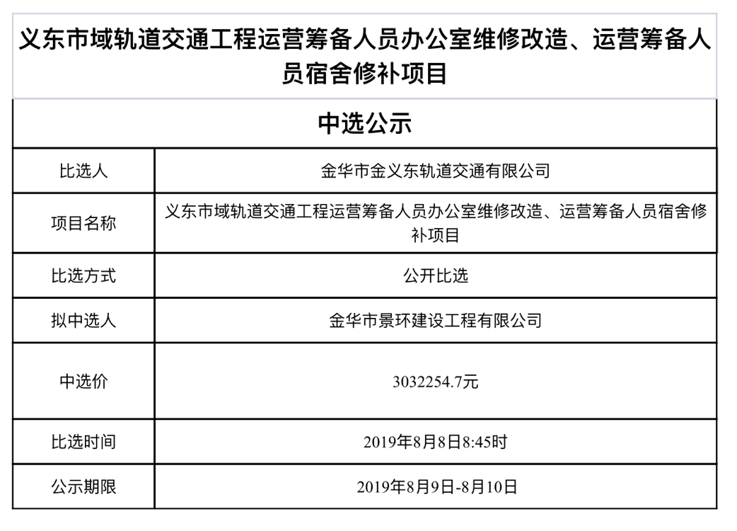 金華-義烏-東陽市域軌道交通工程運(yùn)營2025-2026年消防器材采購項(xiàng)目中標(biāo)候選人公示