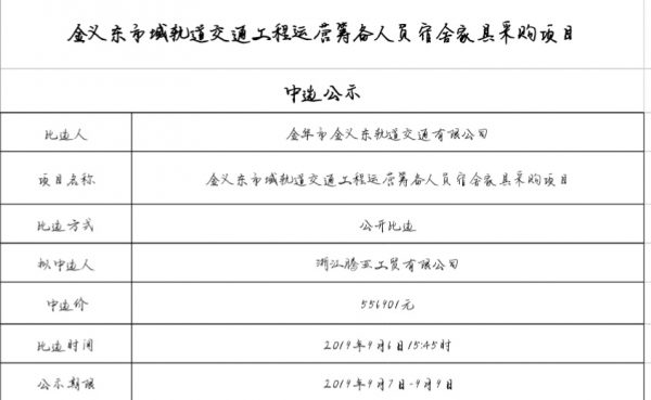 金華-義烏-東陽市域軌道交通工程運(yùn)營2025-2026年消防器材采購項(xiàng)目中標(biāo)候選人公示