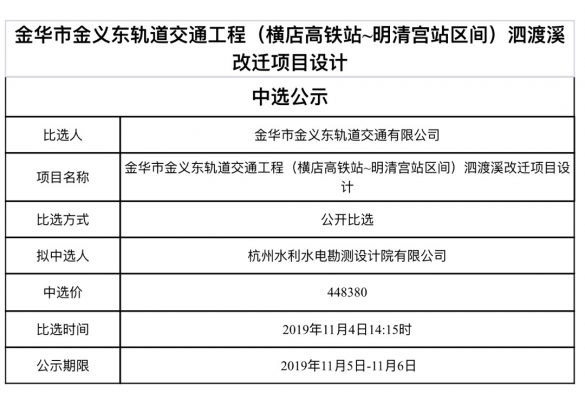 金華市金義東軌道交通有限公司運營2026-2027年度活動實施服務(wù)機構(gòu)框架協(xié)議項目中標(biāo)候選人公示