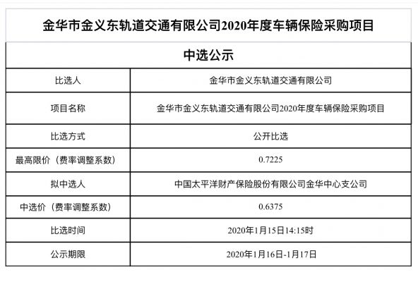 中選公示(車輛保險(xiǎn))