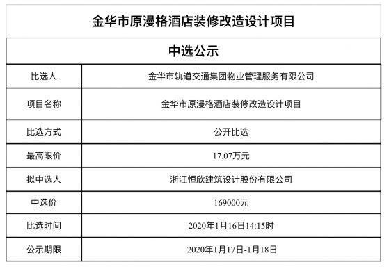 金華市金義東軌道交通有限公司運營2026-2027年度活動實施服務(wù)機構(gòu)框架協(xié)議項目中標(biāo)候選人公示