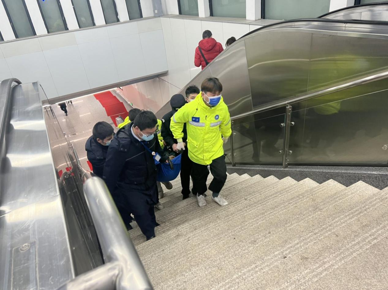2月6日下午,秦塘站內(nèi)一名乘客突發(fā)嚴(yán)重疾病。車站工作人員立即攜帶急救箱到達(dá)現(xiàn)場設(shè)置圍擋,了解乘客既有病史后聯(lián)系“120”,隨后開辟站內(nèi)搶救通道,爭奪“黃金搶救時(shí)間”。